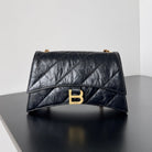 CRUSH CHAINED BAG 22 IN BLACK QUILTED CRUSHED CALFSKIN GOLD HARDWARE