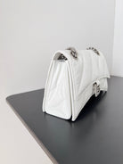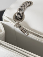 CRUSH CHAINED BAG 25 IN WHITE QUILTED CRUSHED CALFSKIN SILVER HARDWARE