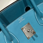 HM Shoulder Birkin 29cm Blue Denim Swift Leather Silver Hardware