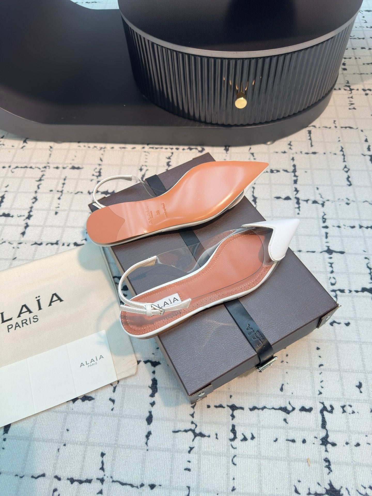 Alaia Heart Flat Slingbacks White Sheepskin 800937