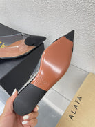 ALAIA LE COEUR FLAT SLINGBACKS IN BLACK PATENT LAMBSKIN