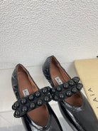 ALAIA MARY JANE PEARL IN GLOSSY BLACK LAMBSKIN