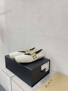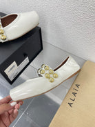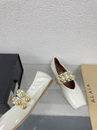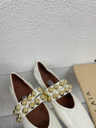 ALAIA MARY JANE PEARL IN GLOSSY WHITE LAMBSKIN