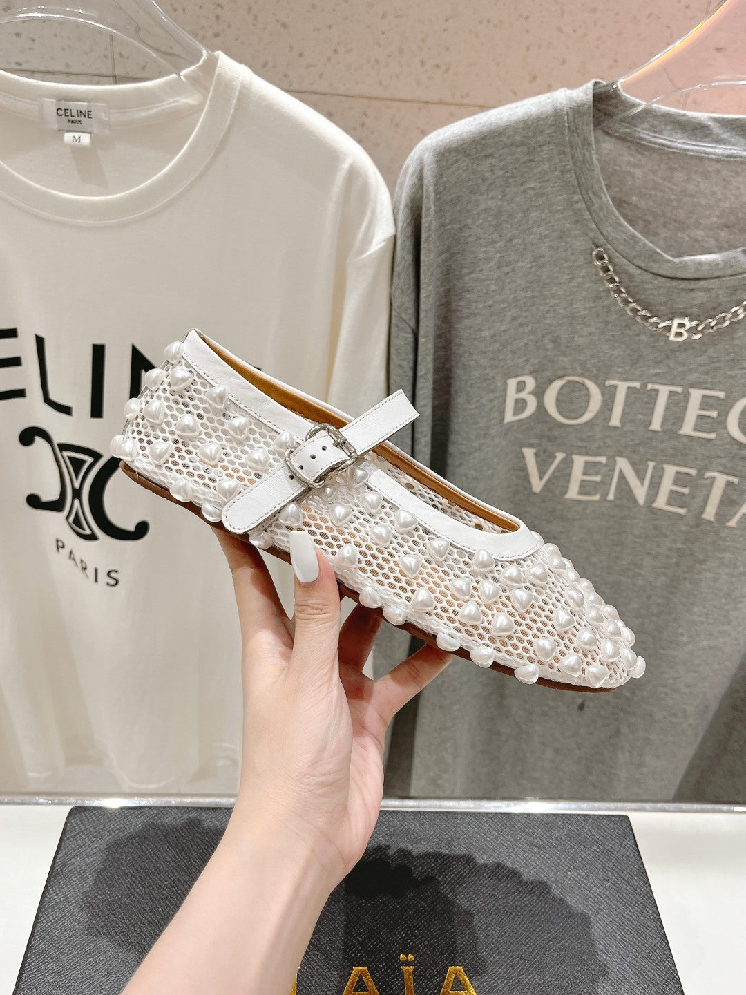 ALAIA PEARL MARY JANE SHOES IN WHITE MESH AND CALFSKIN