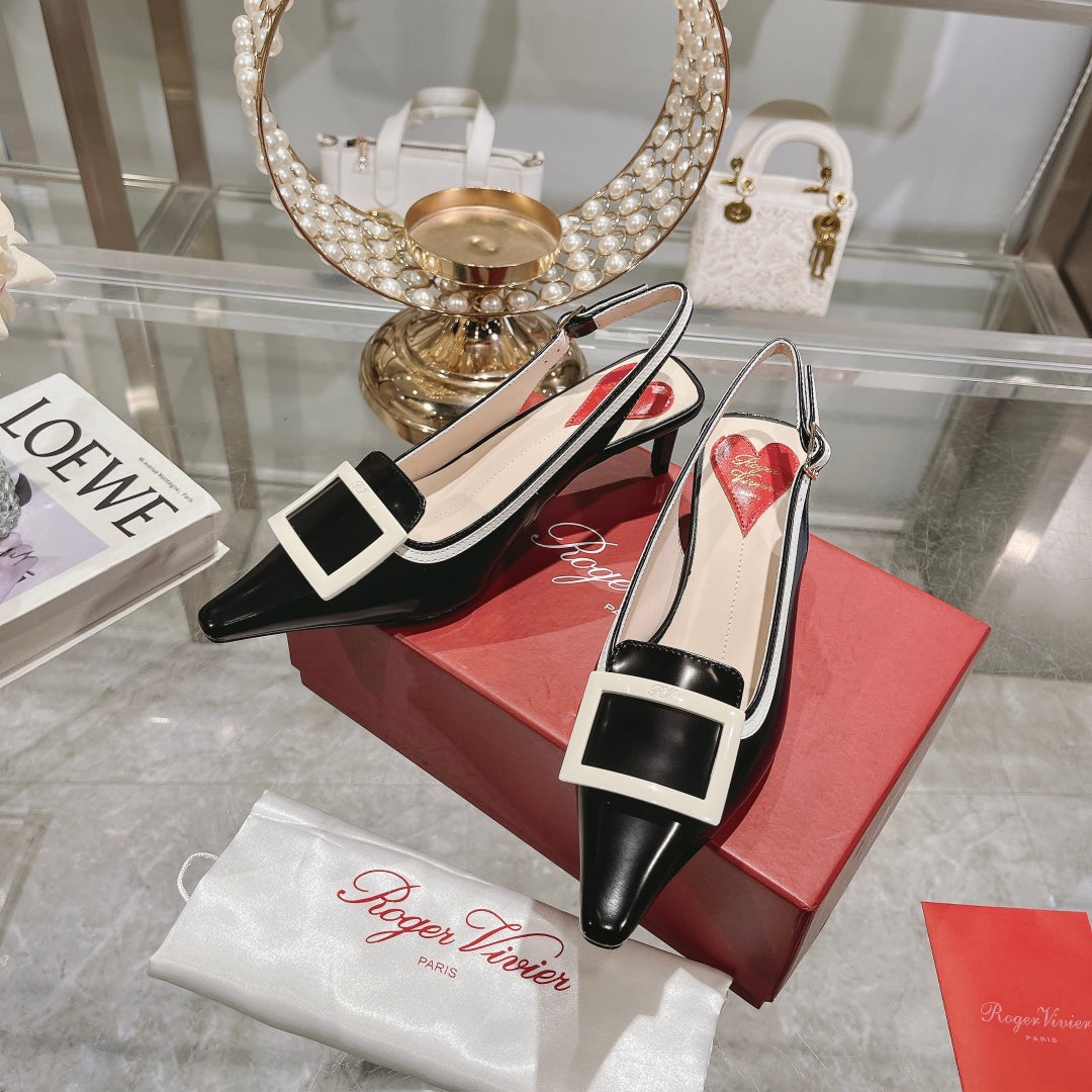 Belle Viv Metal Buckle Slingback Pumps 65 Black White Patent Leather