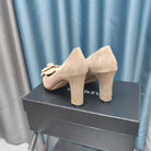 CC HIGH HEELS 80 MM IN TAN BEIGE SUEDE AND BLACK CALFSKIN WITH FLOWER