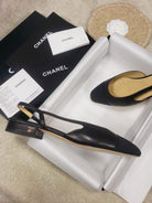 CC Slingback Flat Beige Lambskin Black Grosgrain Lambskin