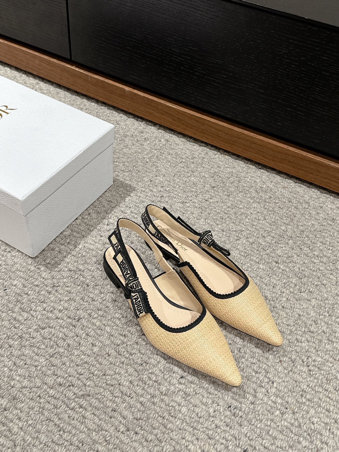 cd slingback flat beige raffia lambskin