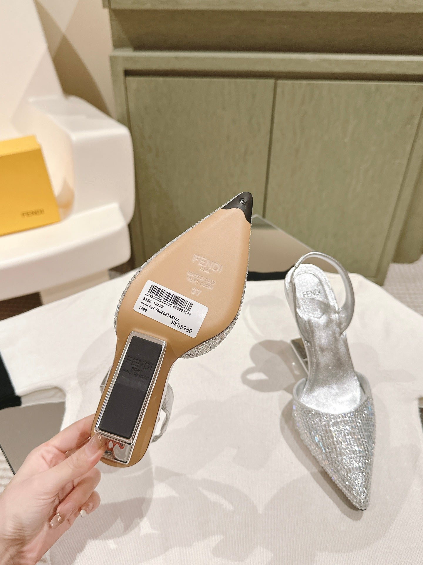FENDI SEQUINS HIGH-HEELED SLINGBACK 85MM SILVER