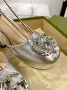 GG CRYSTALS PLATFORM PUMPS SILVER CALFSKIN
