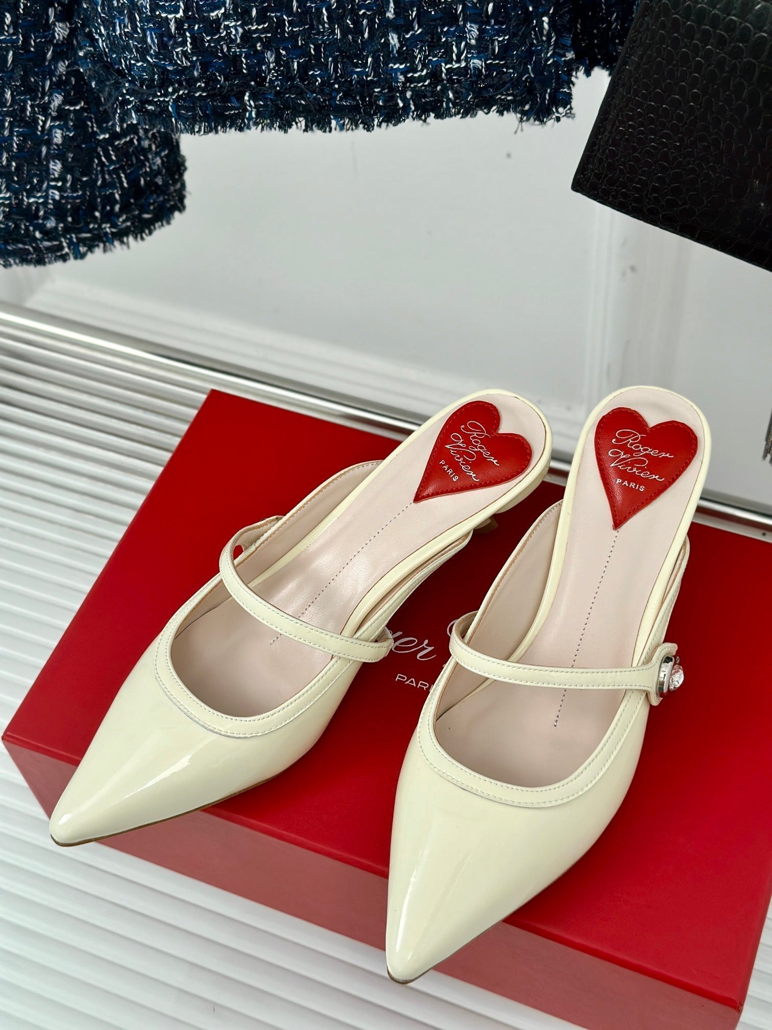 Mary Jane Virgule Mules 55 White Patent Leather