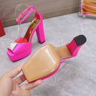 Open Toe Pump With One Stud Diamond Patent Pink Leather 130MM