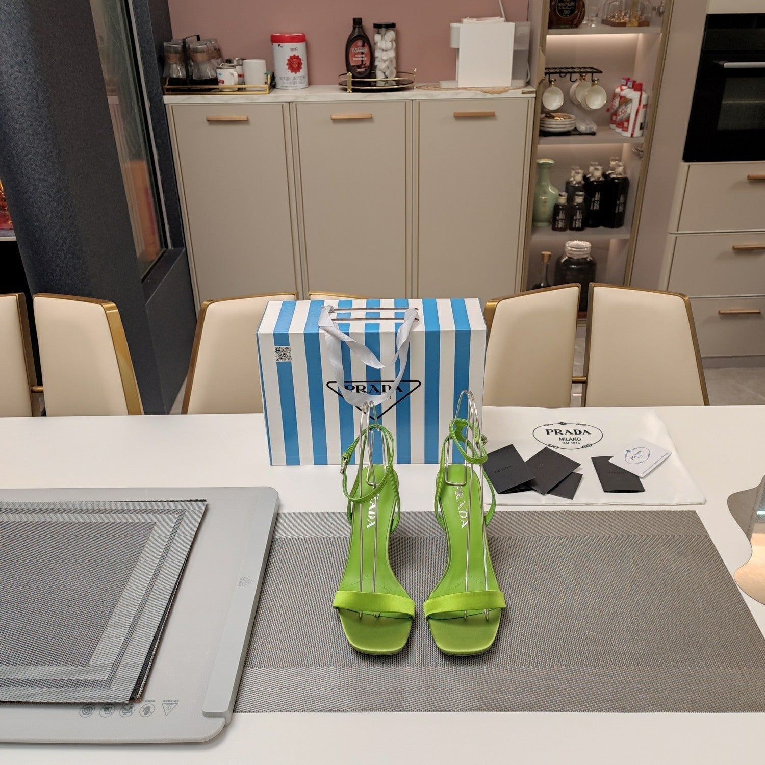 PRA HIGH-HEELED SANDALS PEAR SATIN