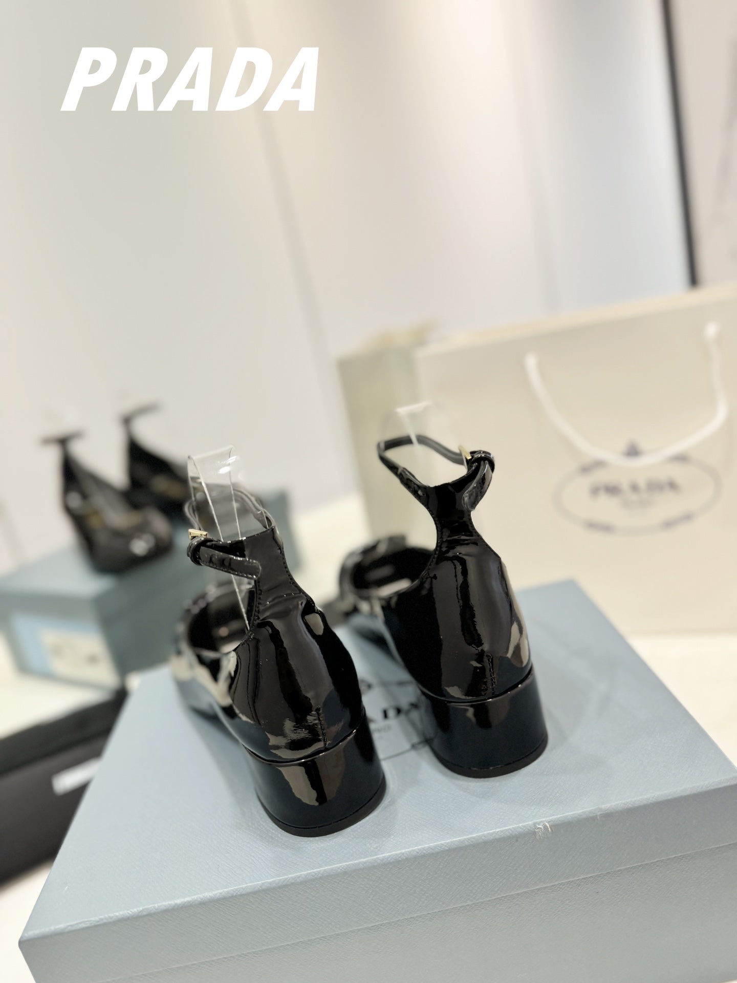 PRA NAPPA MARY JANE PUMPS GLOSSY BLACK LAMBSKIN