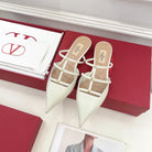 Rockstud Wispy White Calfskin Mule 20mm