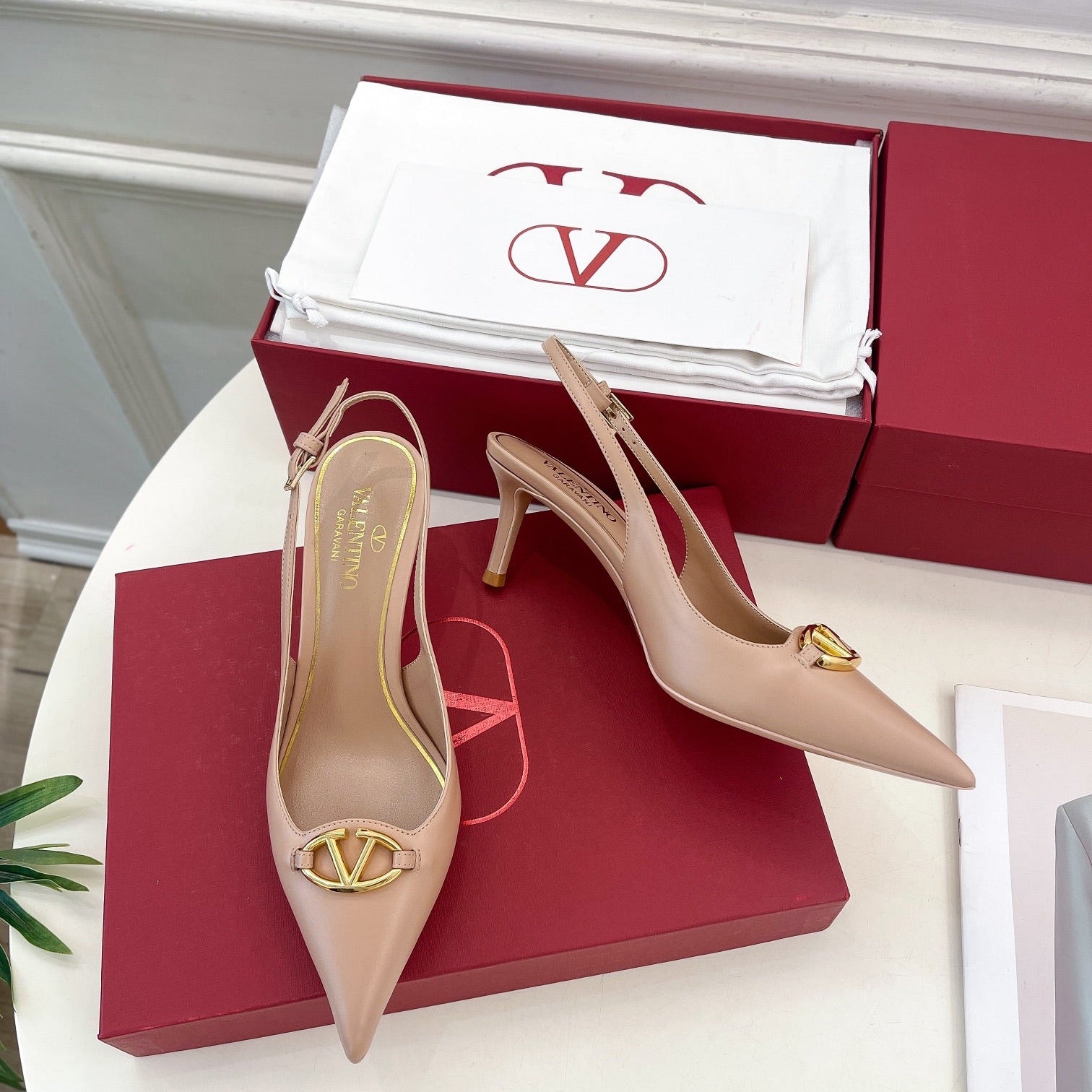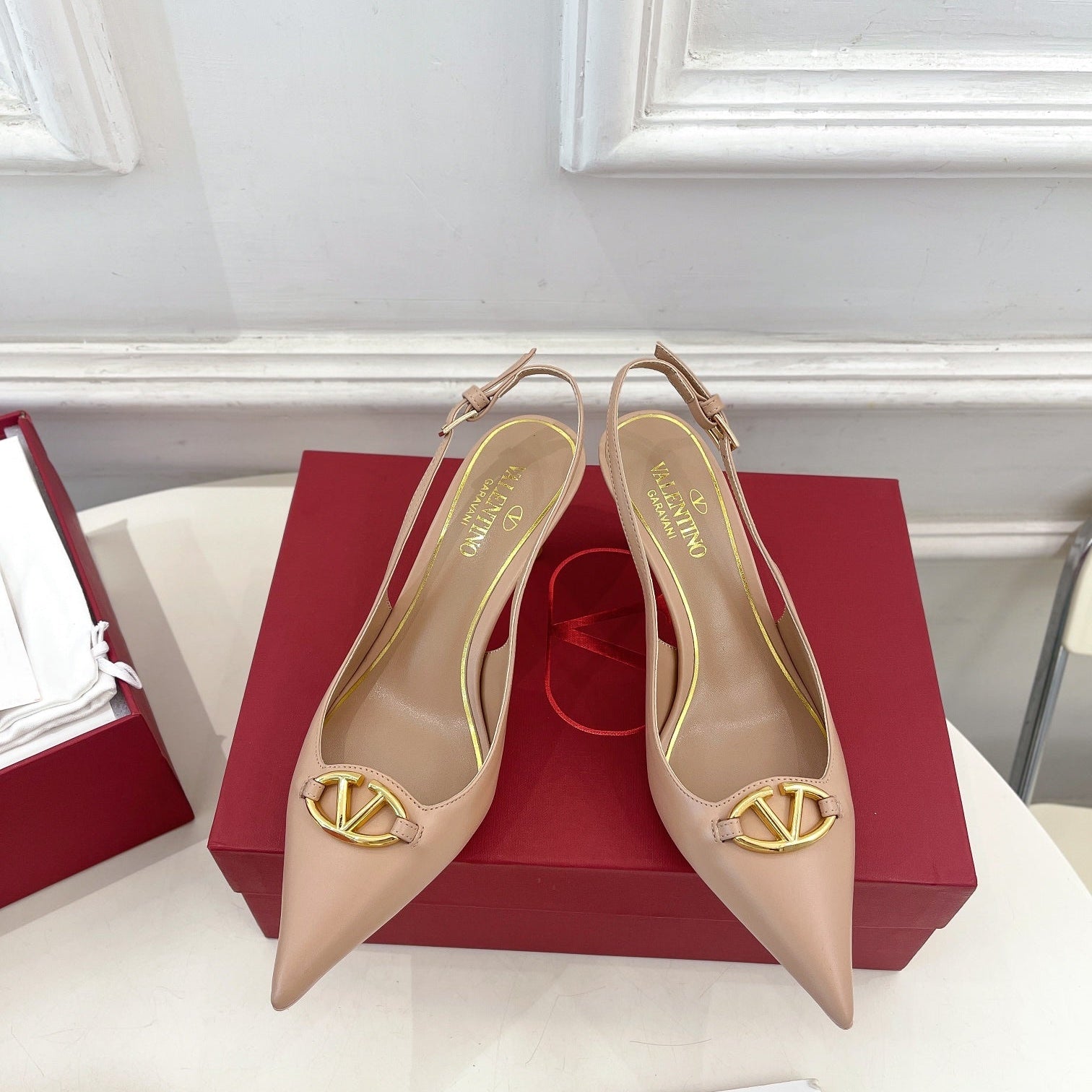 Vlogo Signature Diamond Slingback White Calfskin