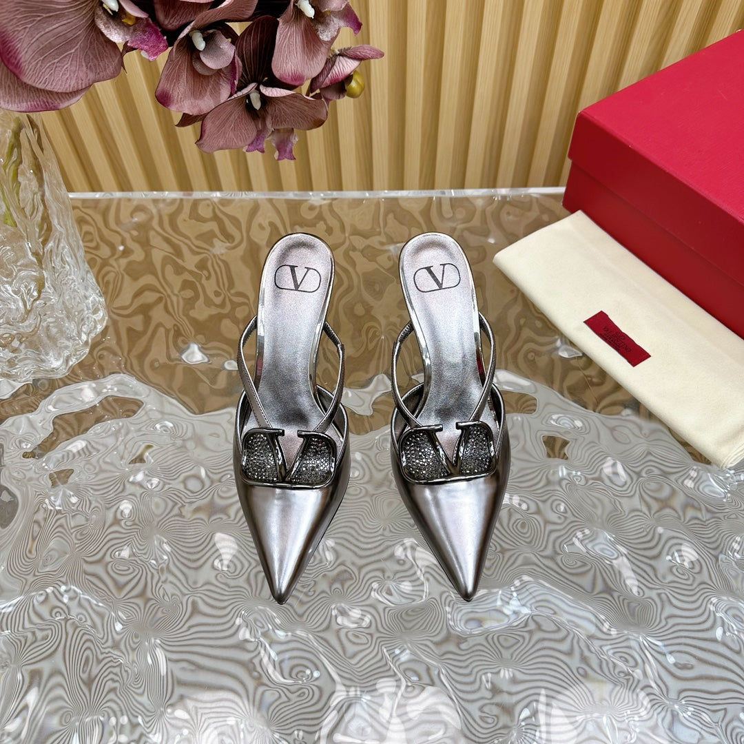 Vlogo Signature with Crystals Cut-Out Slingback Pump 70 Dark Silver Calfskin