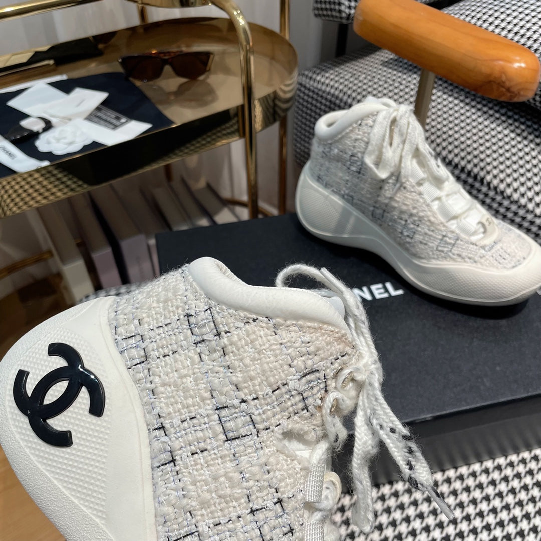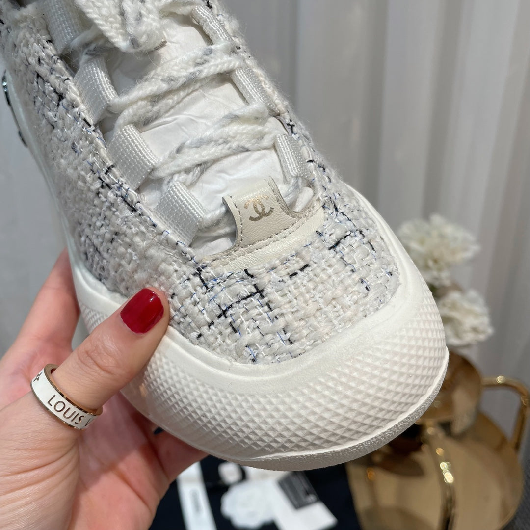 CC Sneaker In White Tweed Fabric 144803