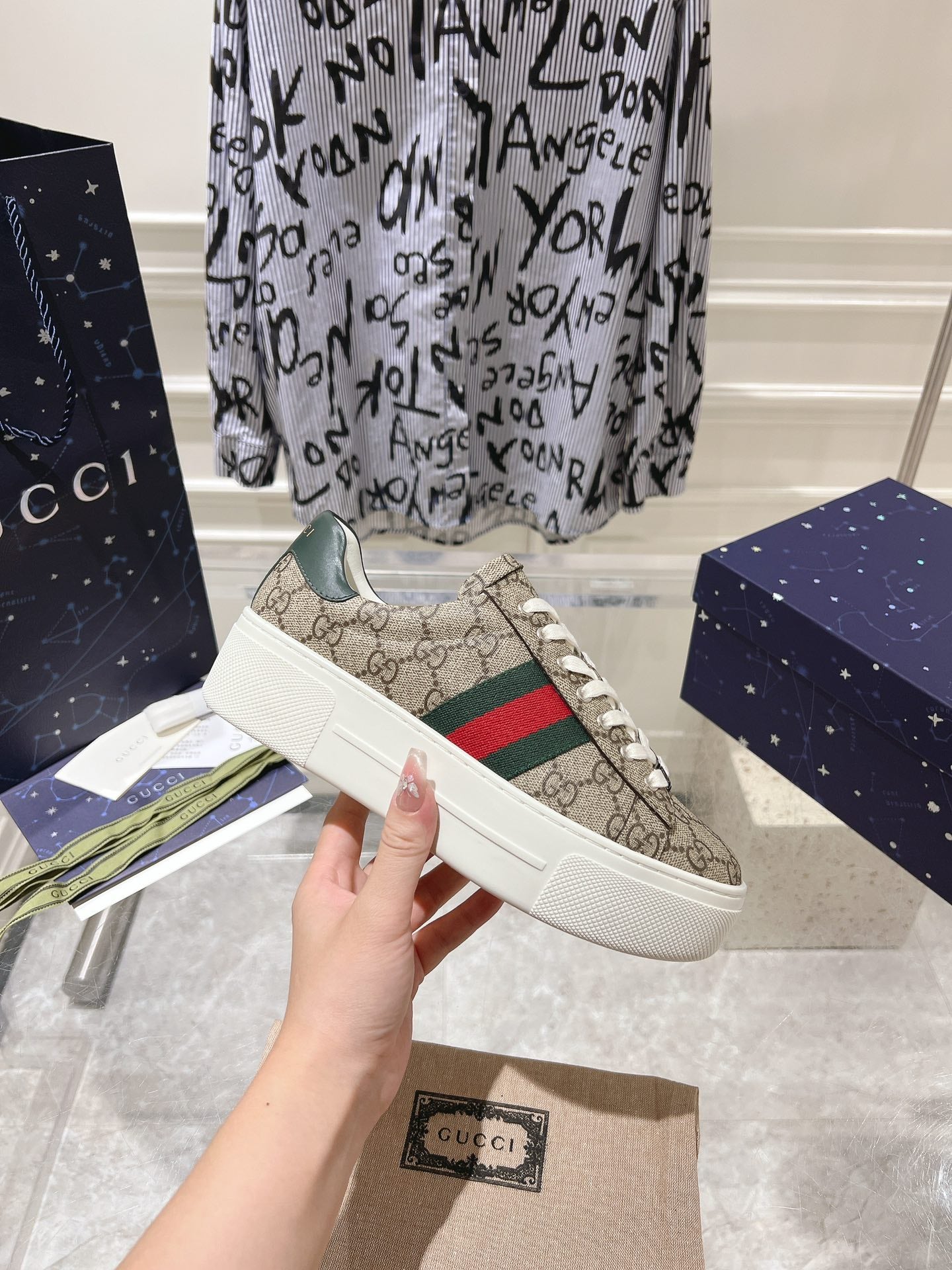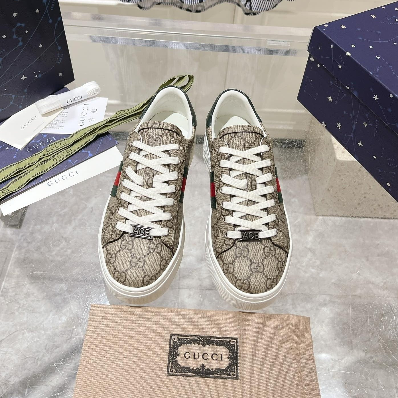 GG ACE 30 SUPREME TRAINER LIGHT BROWN CALFSKIN