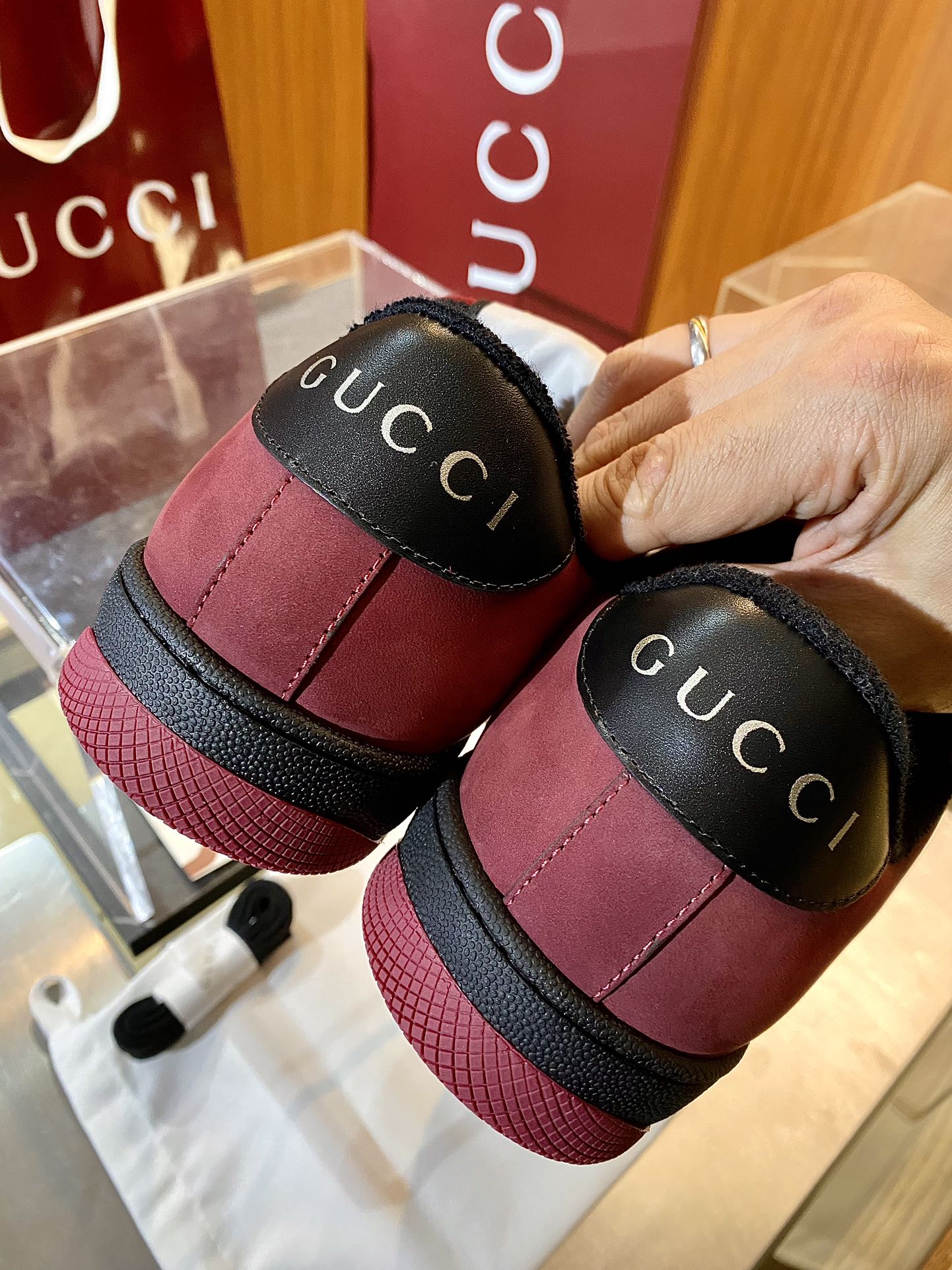 GG Men's 25 Screener Sneaker Red Mesh Suede 524503