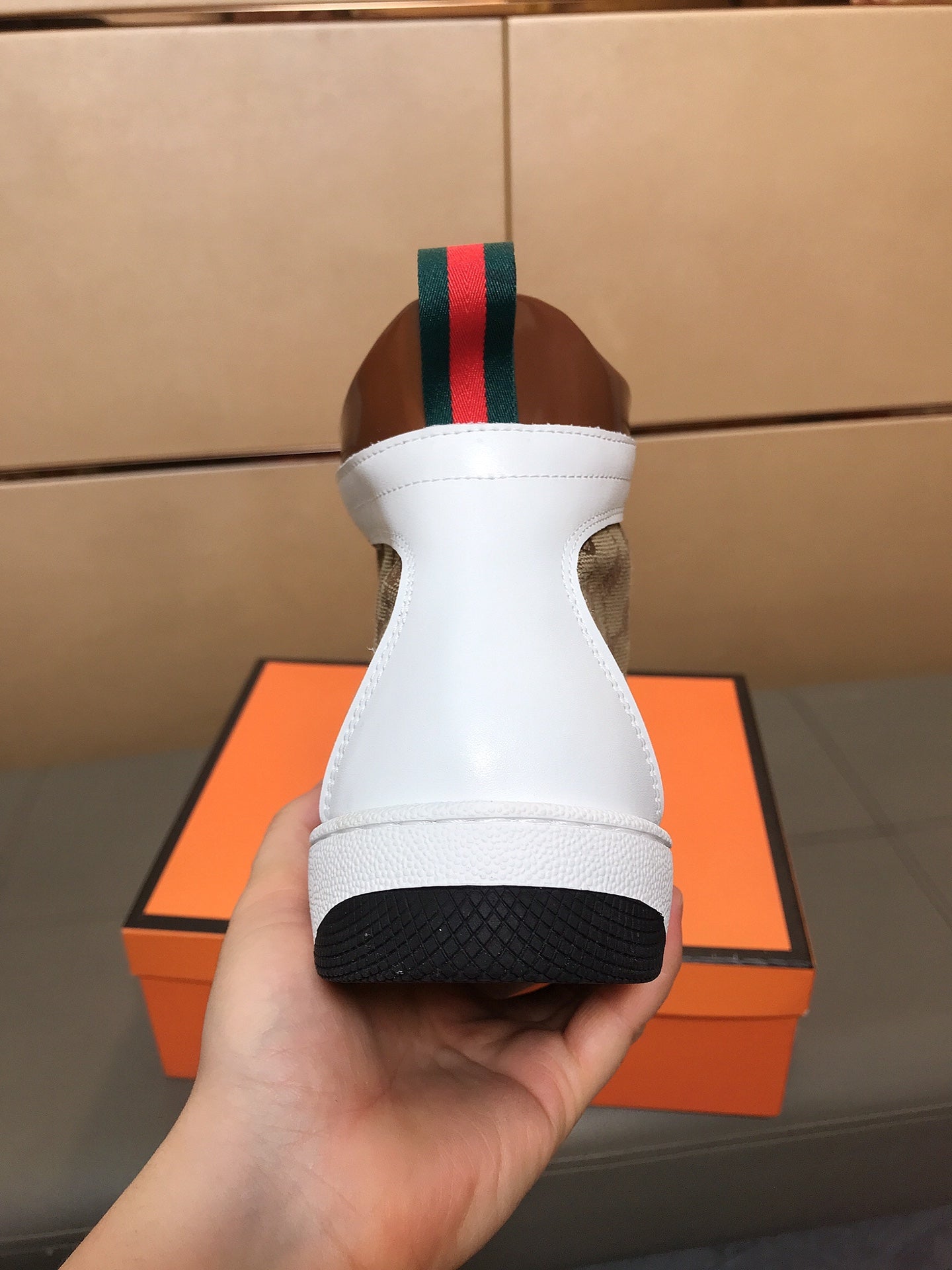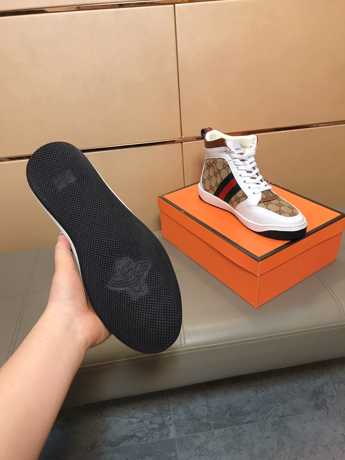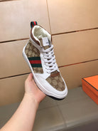 GG Men's High-top Sneakers Brown White Printed Fabric Cowhide 525321