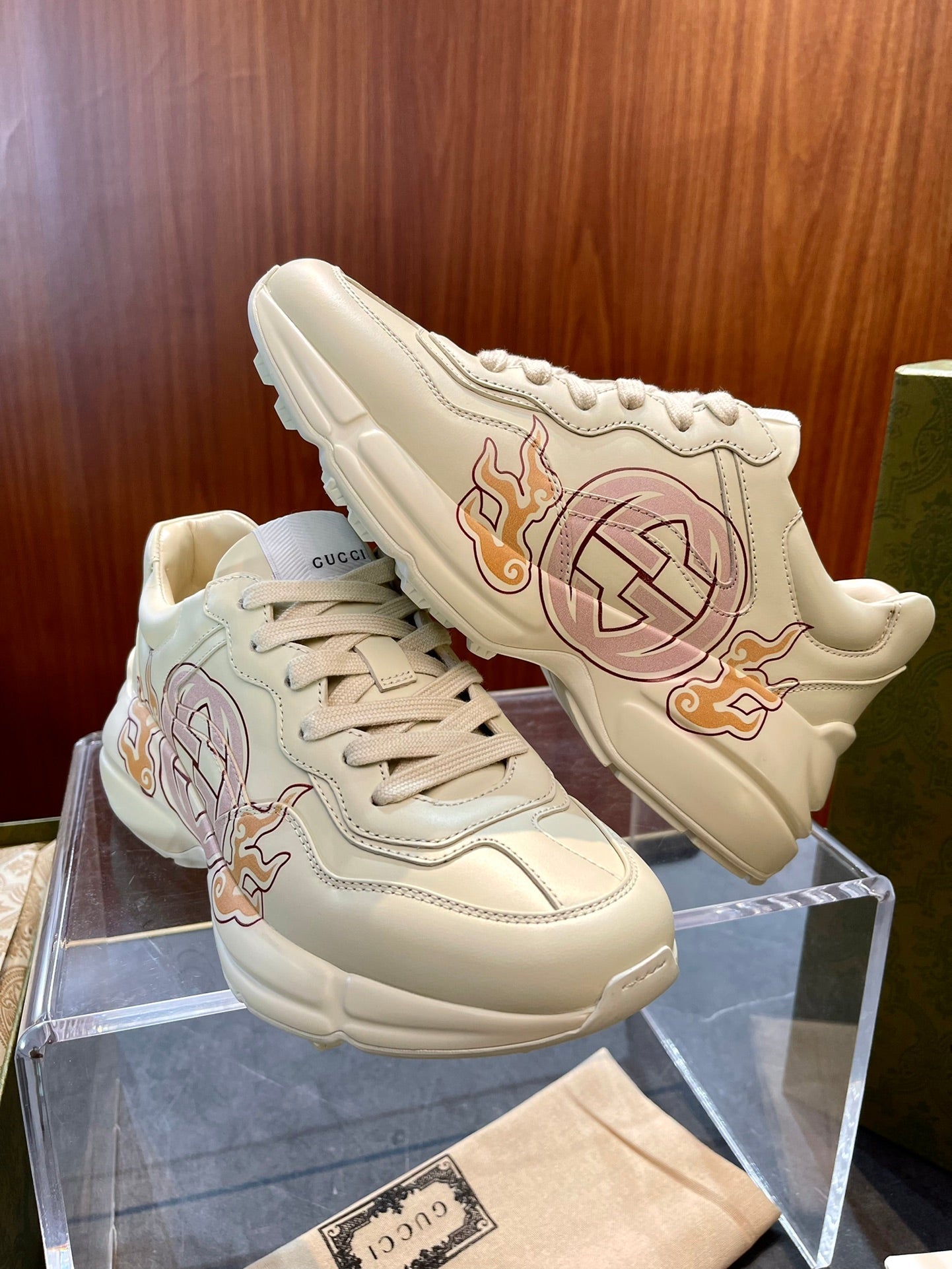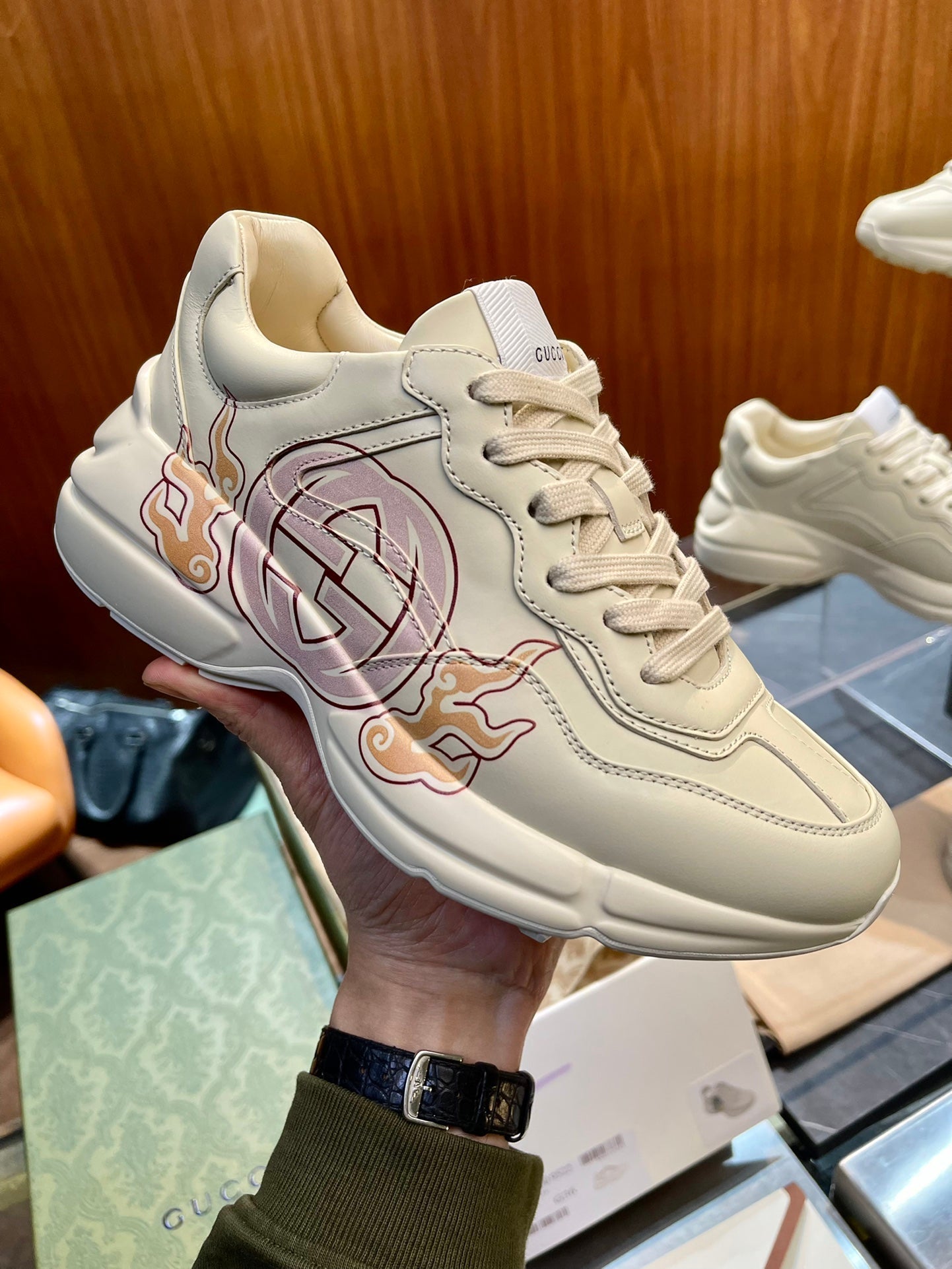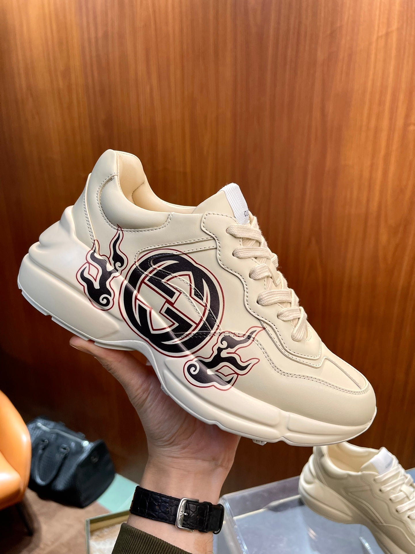 GG Men's Rhyton Sneaker Milk White Calfskin 524496
