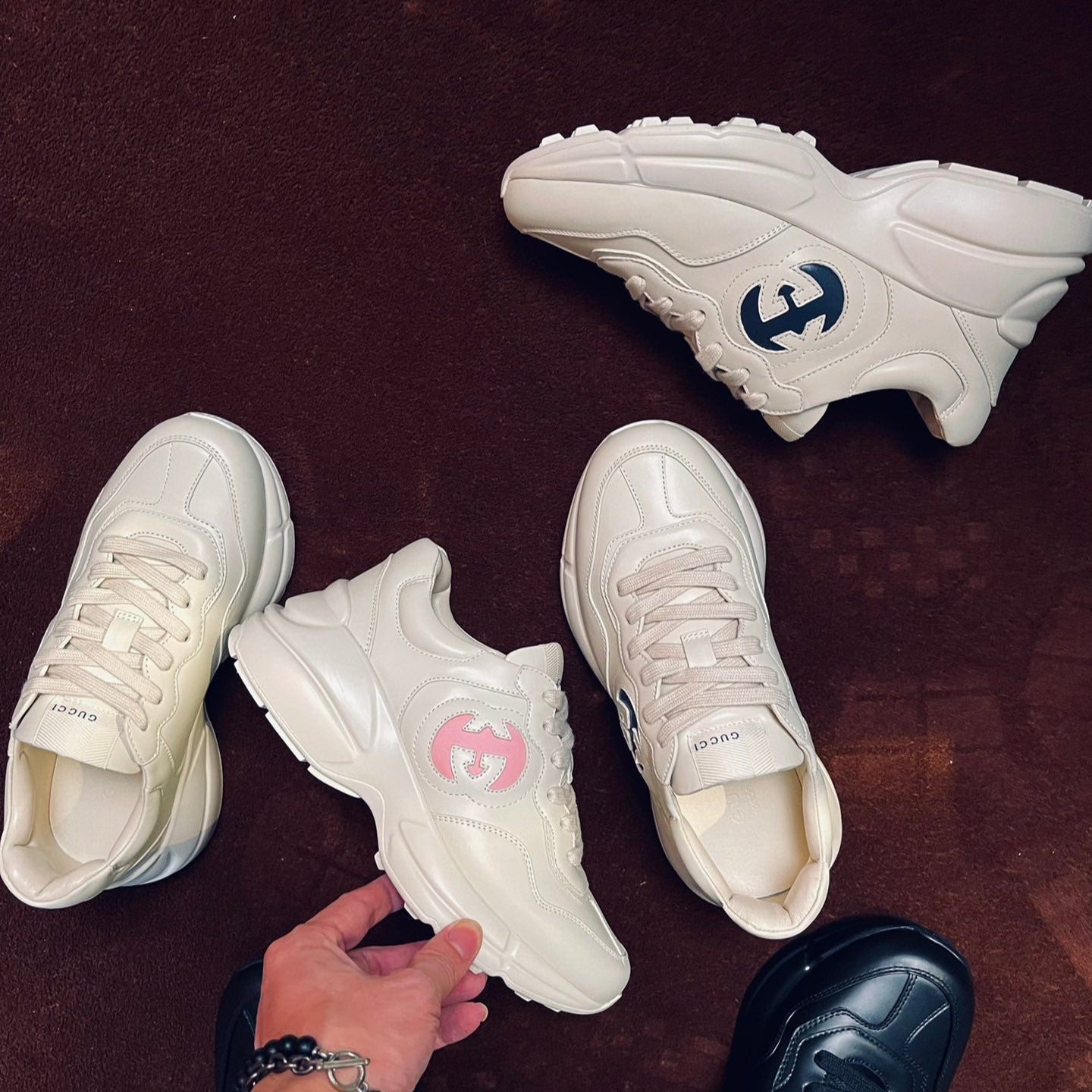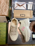 GG Men's Rhyton Sneaker Milk White Pink Calfskin 524491