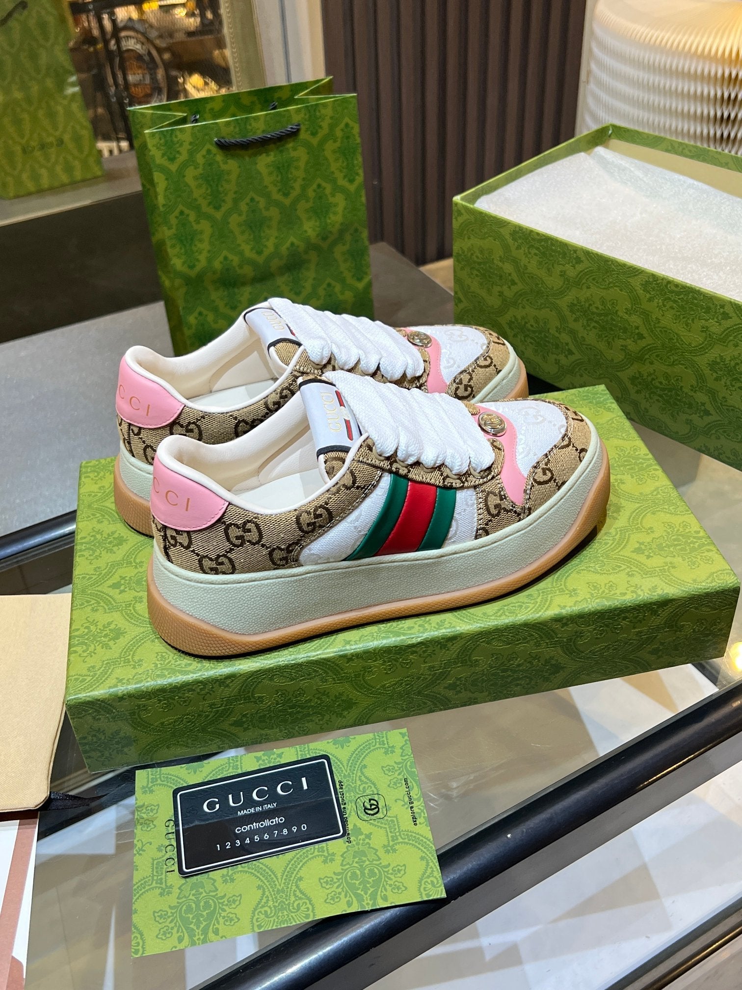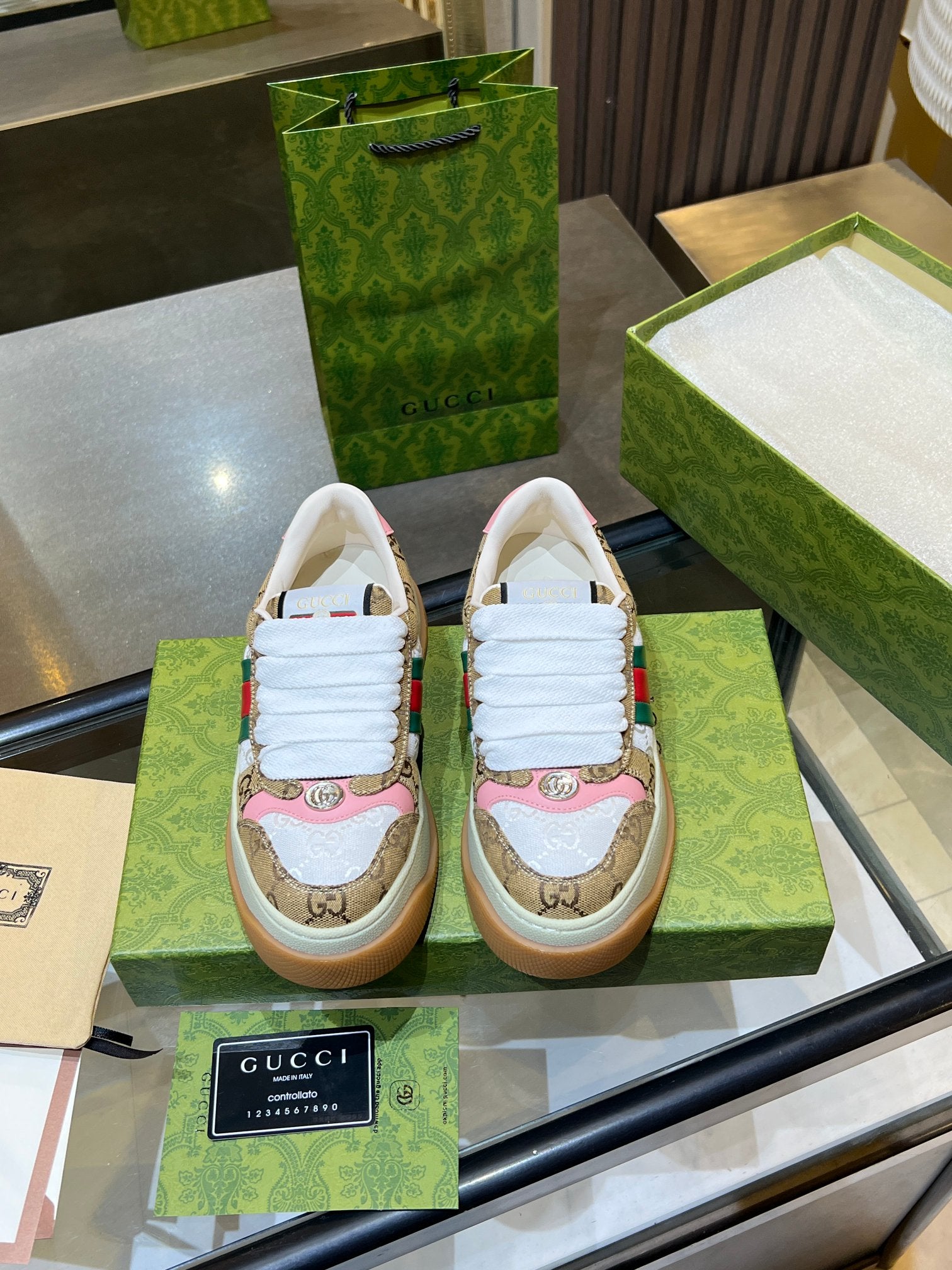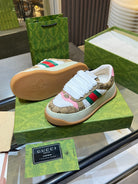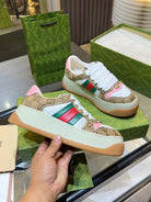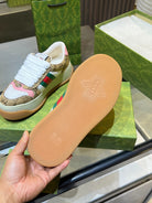 GG Men's Screener Sneaker Brown White Canvas Sheepskin 523601