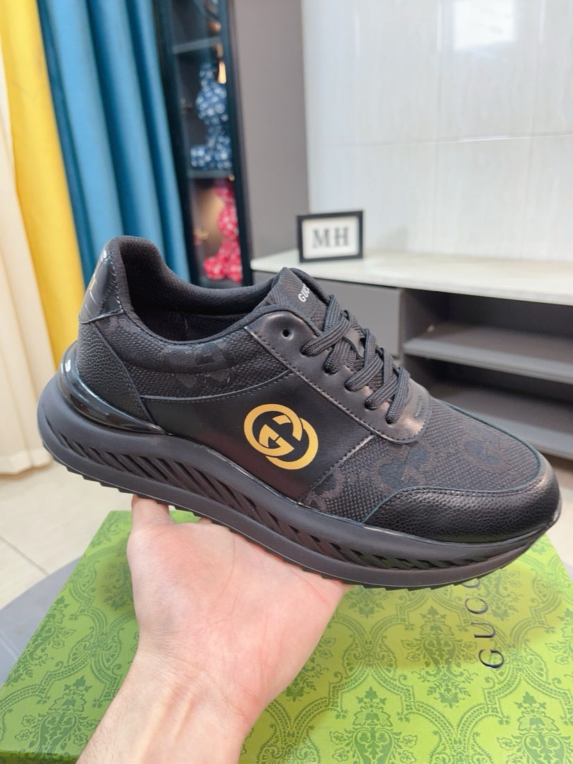 GG Men's Sneaker Black Canvas Calfskin 523338