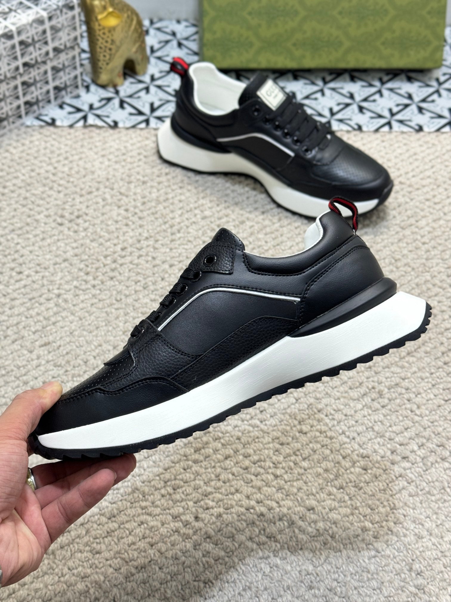GG Men's Sneaker Black Sheepskin 524703