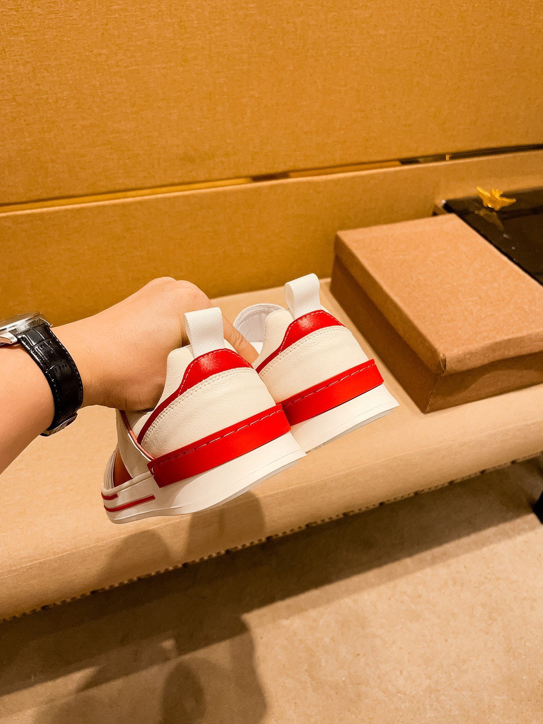 GG Men's Sneaker White Red Cowhide 671710