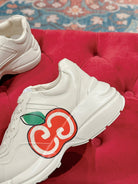 GG RHYTON TRAINER WHITE CALFSKIN WITH APPLE MOTIF
