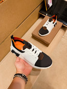 HM Men's Depart Slip-on Sneaker White Black Knit Cowhide 541299