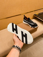 HM Men's Flex Slip-on Sneaker Black Knit Cowhide 671700
