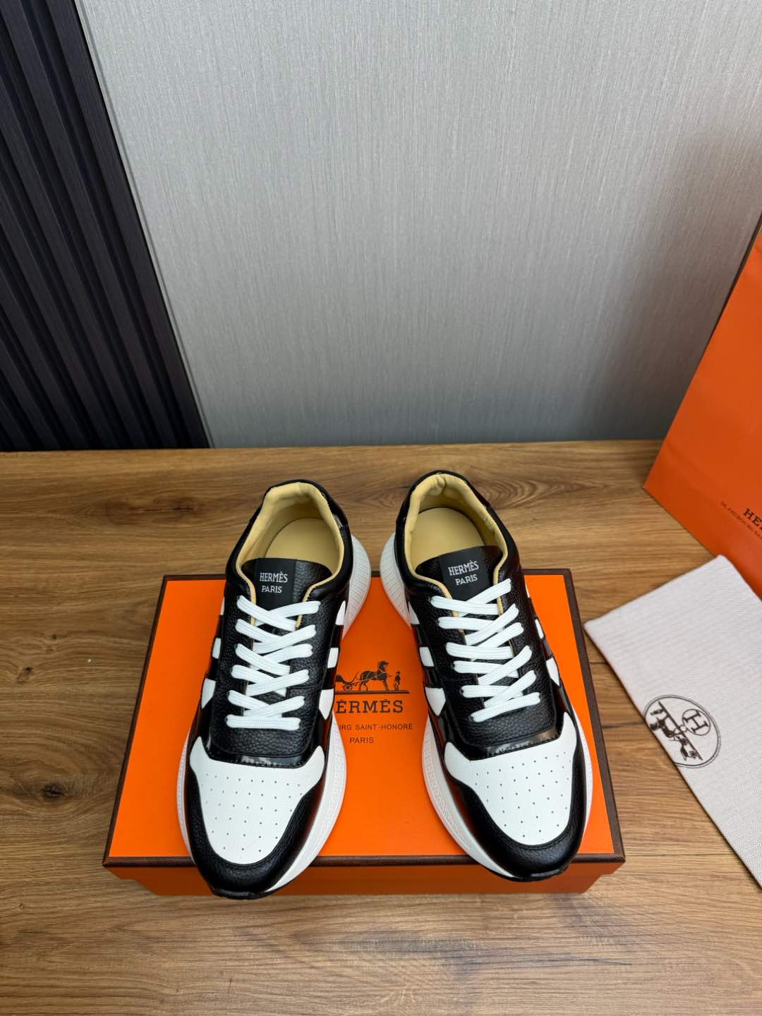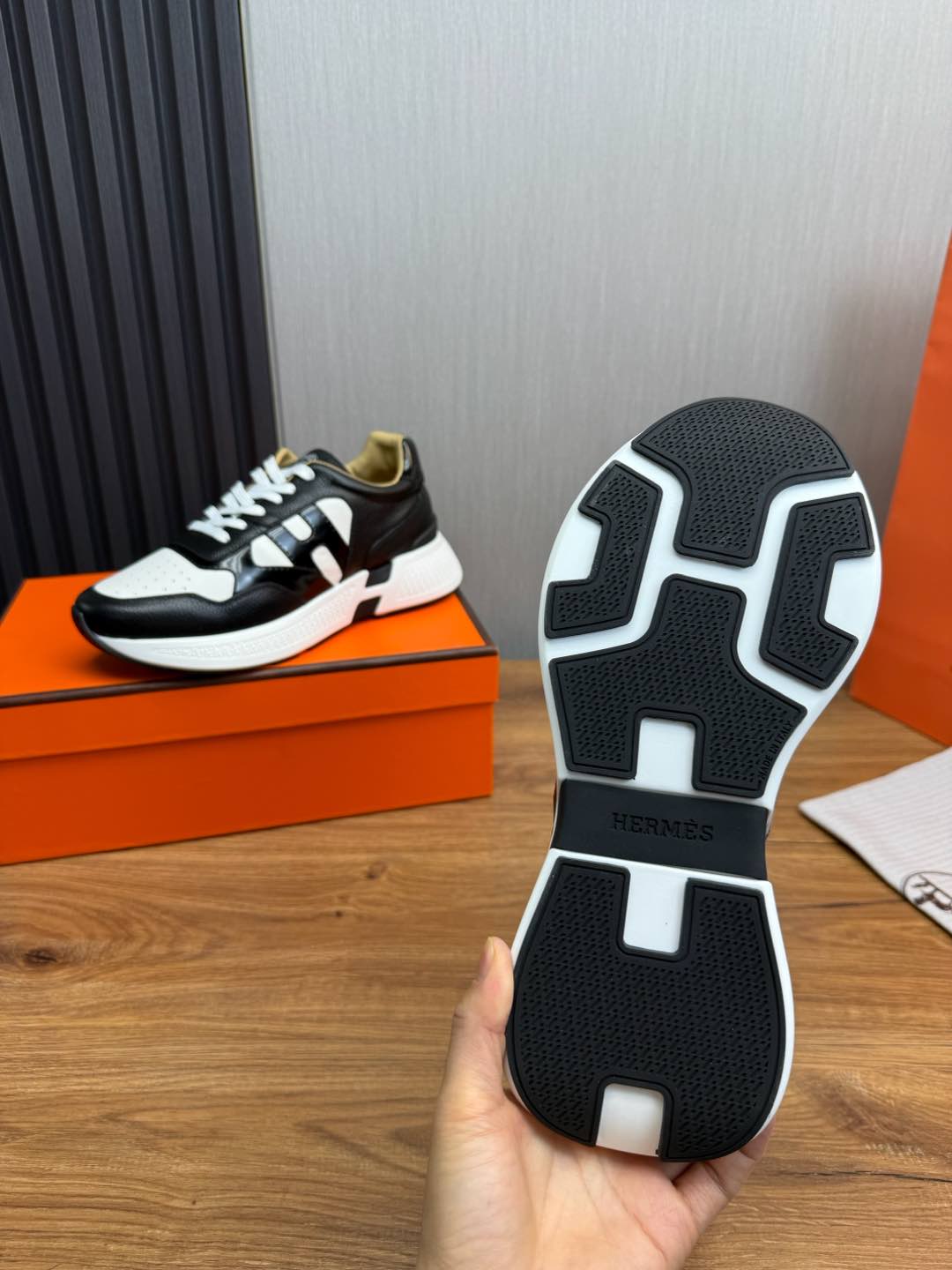 HM Men's Sneaker Black White Cowhide 519235