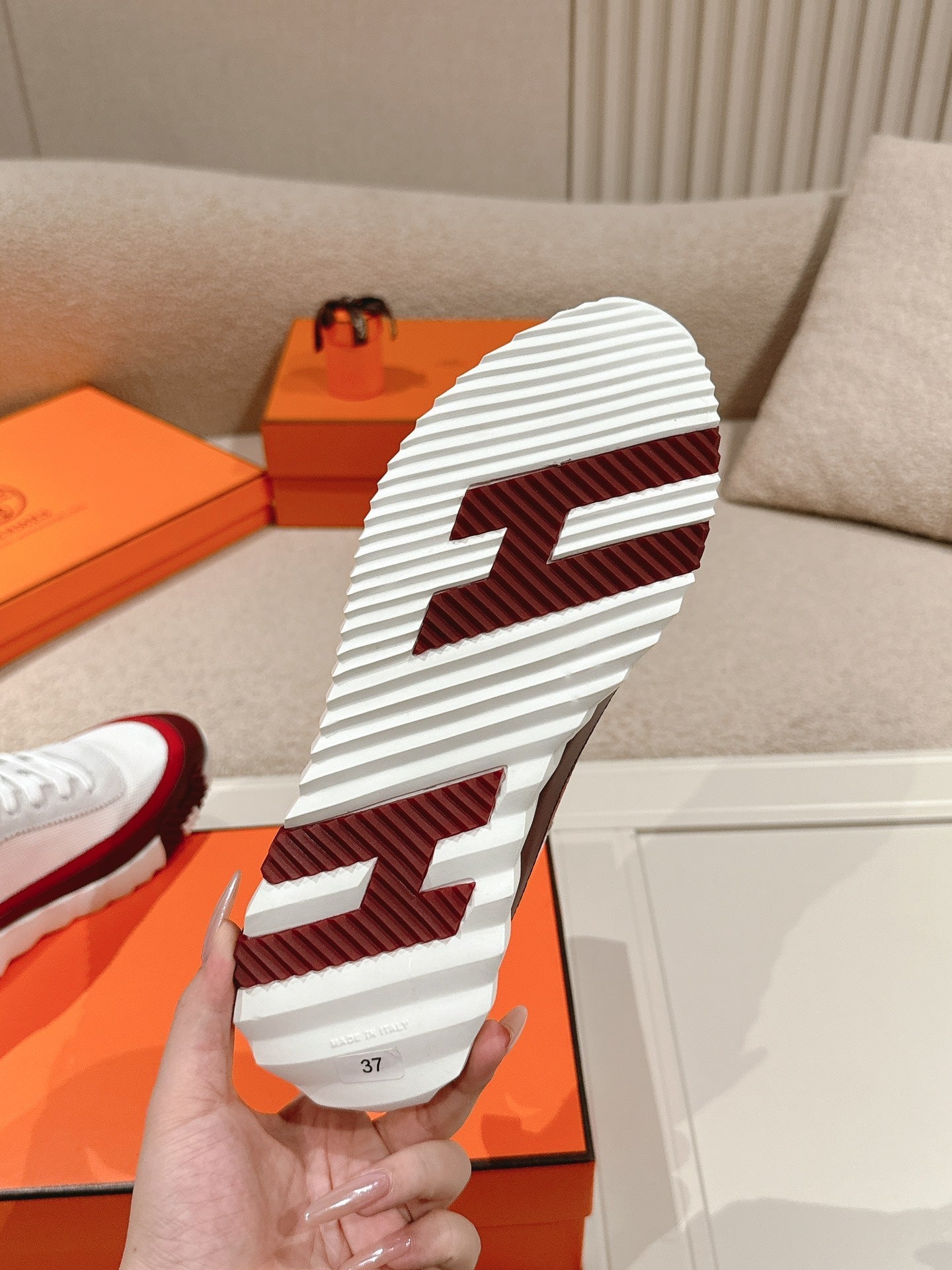 HM Men's Sneaker White Red Goatskin Suede 578952