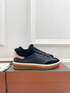 LP Tennis Walk Sneaker In Black Cowhide Lined With Wool Fleece 988262