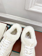 LP Tennis Walk Sneaker In White Grey Lambskin Lined With Wool Fleece 988264