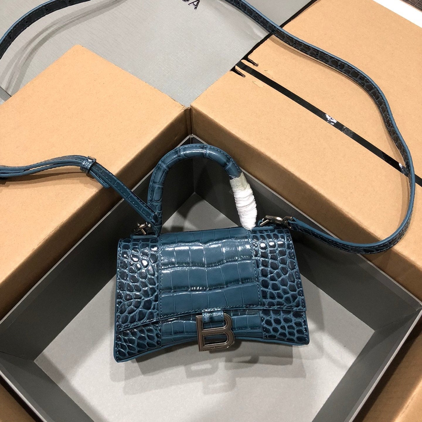 Balenciaga Hourglass bag dark blue crocodile skin