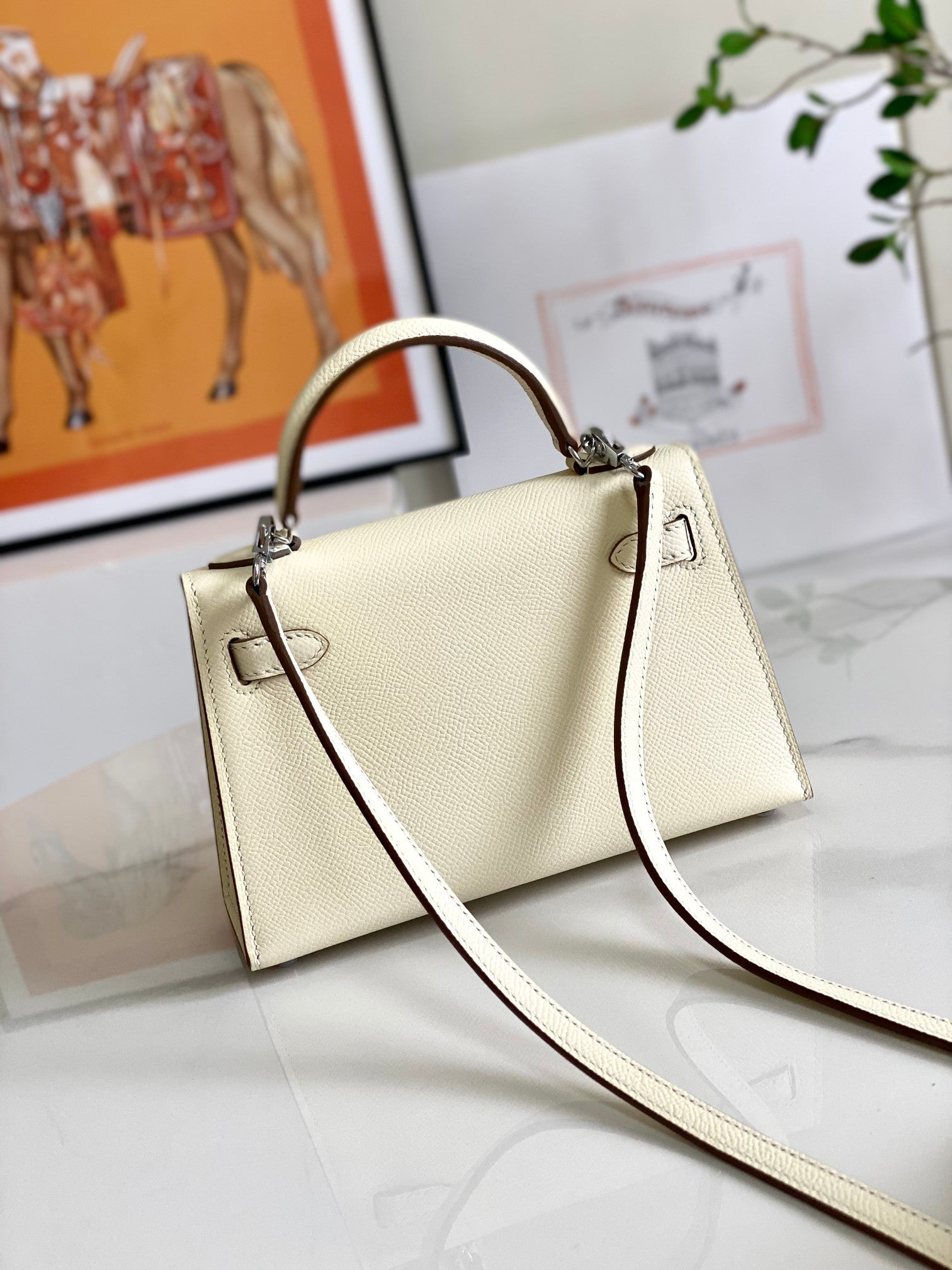 HM Mini Kelly 19cm Cream Epsom Silver Hardware