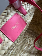 medium classic panier 25cm raffia and dark pink calfskin