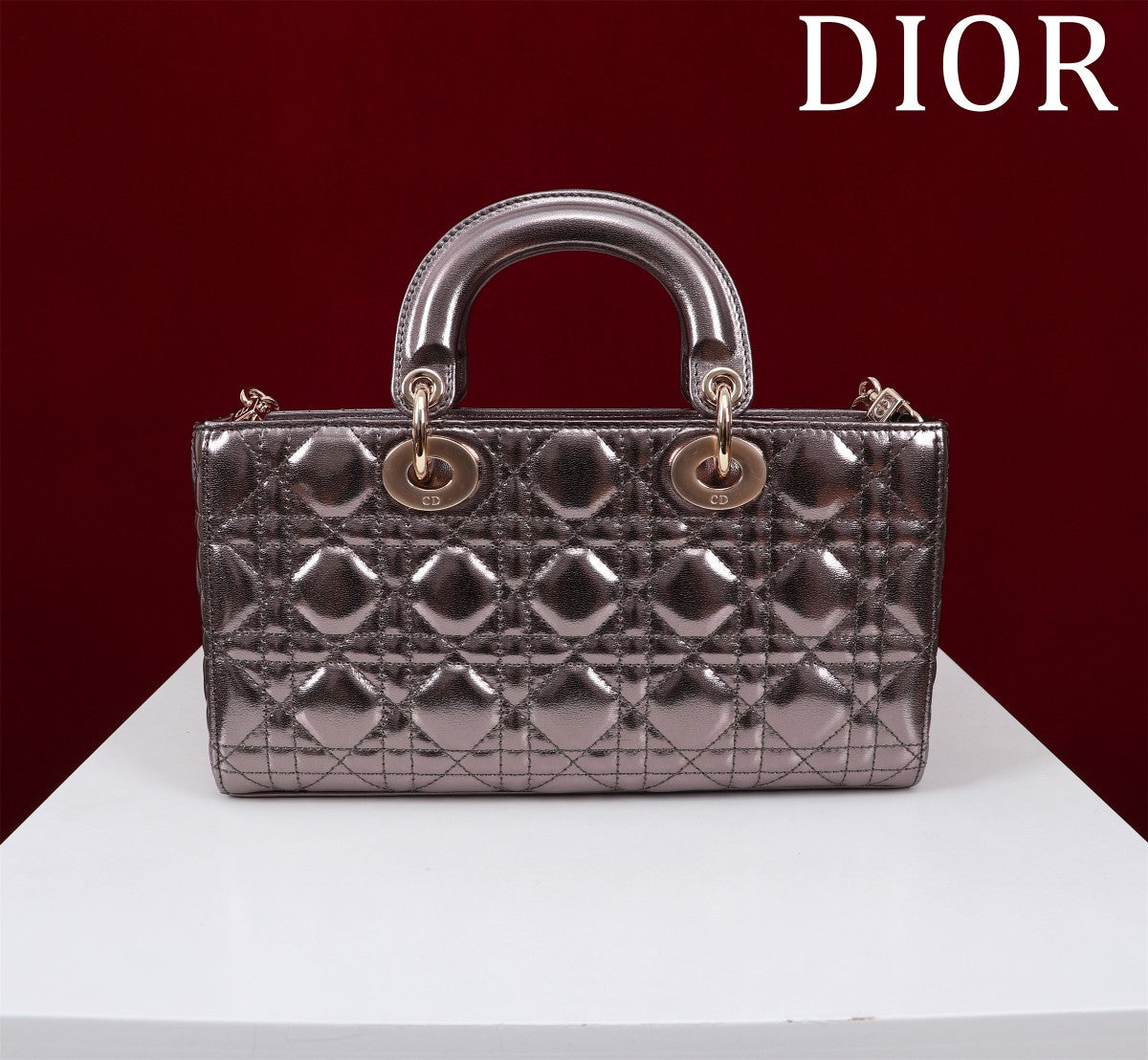 medium lady d-joy 26 dark purple metalic lambskin