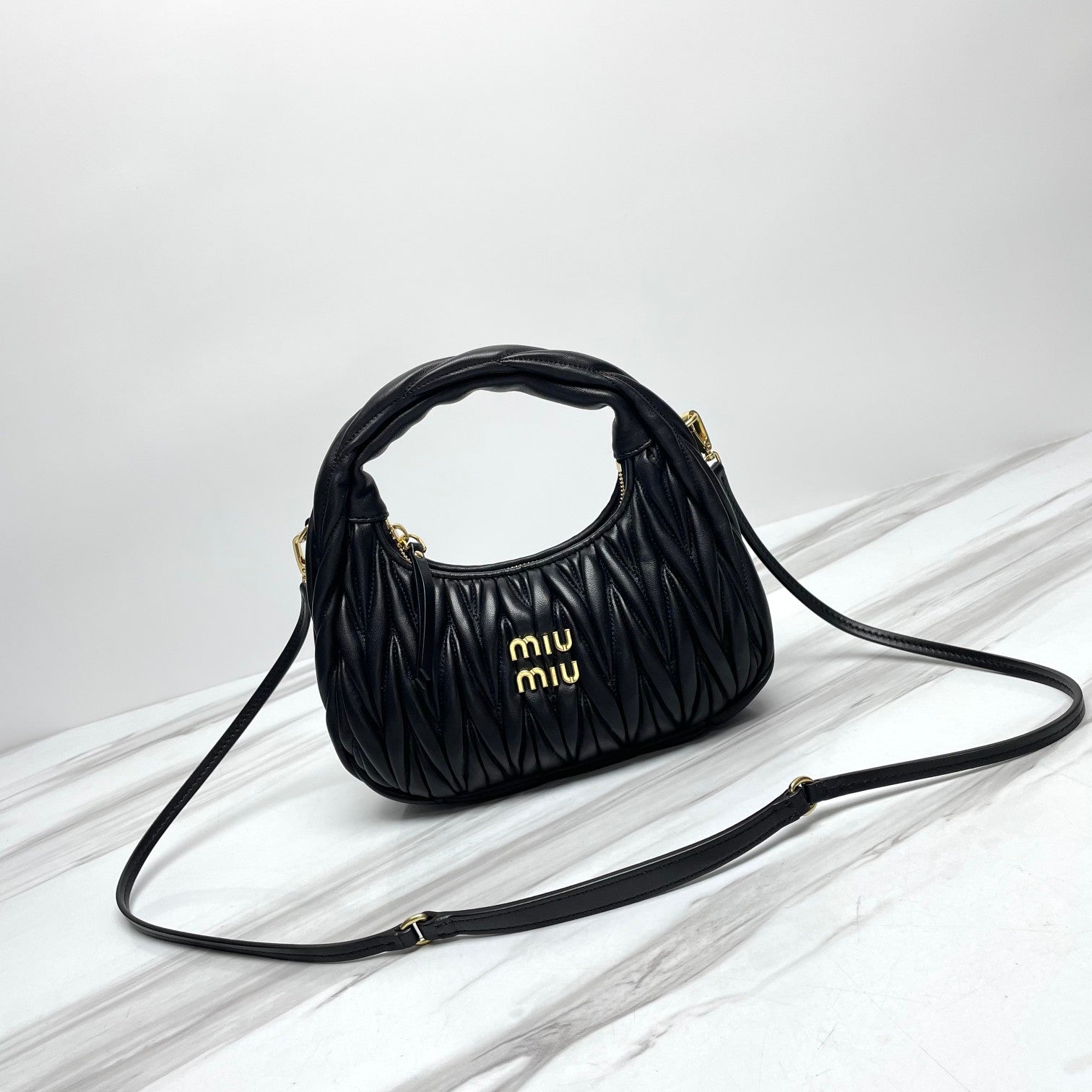 miuwander hobo 23 black matelasse leather