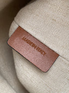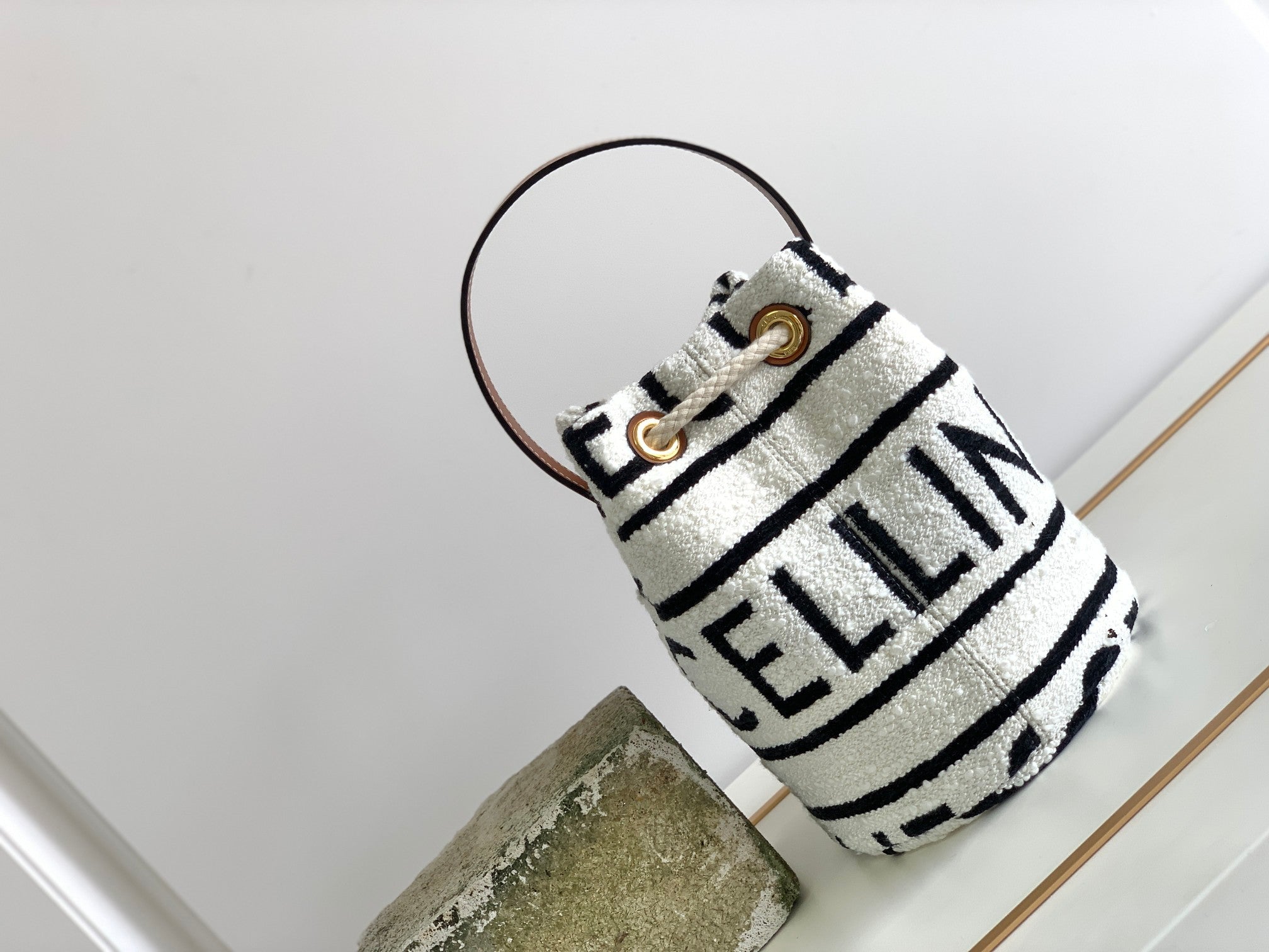Material: fabric lining, hand carry, drawstring closure, leather handle length 13 cm