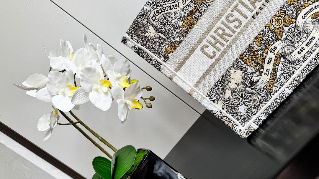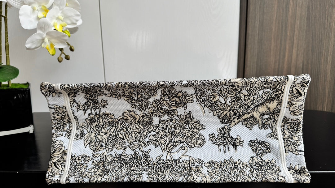 CD Book Tote 36.5 Beige White Canvas Around The World