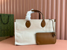 Gucci Medium Tote Bag Brown White Leather Canvas 248187