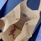 - Material: Calfskin, raffia