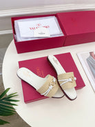 GARAVANI V LOGO SIGNATURE SLIDE IN BEIGE RAFFIA AND WHITE CALFSKIN