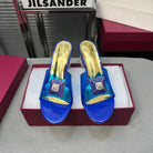 Heeled Sandals 6cm with Crystal Square Buckle Gold and Blue