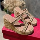 ROCKSTUD LAMINATED NAPPA WEDGE SANDAL 100 MM ROSE BROWN